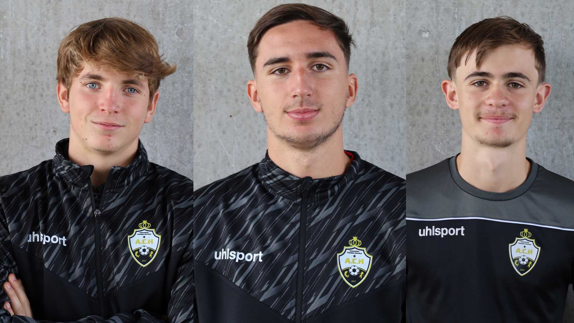 (Yann GASCON, Evan TABAILLOUD et Johan PERDEREAU, joueurs de l’équipe U17 D1 de l’ACH et éducateurs à l’école de foot.)